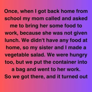 One afternoon after school, the narrator and their sister prepared a simple salad for their mom, who hadn’t eaten all day. Though hungry themselves, they brought the food to her…